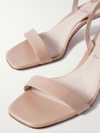 Christian Louboutin's 'O Condora' sandals epitomize minimalist elegance. Made from smooth beige leather, they have square toes and slim straps that elegantly frame the foot. The sculptural kitten heel reveals a peek of the signature red lacquered soles. Size & Fit - Fits true to size, take your normal size - Italian sizing Details & Care - Heel measures approximately 55mm/ 2 inches - Beige leather - Slingback strap - Designer color: Milk