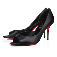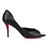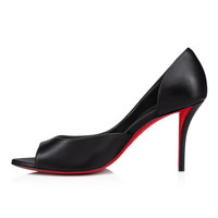 The Open Apostropha pump has an open toe. Set on an 80 mm angled heel, it is entirely crafted in black leather. Its daring low-cut vamp elegantly reveals the foot. This urban Maison Christian Louboutin model is sophisticated and modern with delicate finishing details. Product information Material: Nappa leather Color: Black Reference: 1240756B439 Heel height: 80 mm Collection: Summer 24