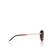 Dolly LB0001 is one of the most iconic styles of this sunglasses collection. Oval shape with palmette pattern crafted metal in the internal part of the frontal grabbed to the acetate profile with tiny metal red sole. Art deco inspired temples with palm detail on the hinge. This model is made in a black color and pale gold with smoke gradient red lenses. High-performance Zeiss lenses offering exceptional quality comfort and durability in an exclusive color made only for Christian Louboutin collection. This style embody brand's DNA; the intricate palmette pattern on the bridge, beautifully contrasting with bold black eye rims. Encased in bold, architectural frames, the lenses offer a sophisticated nod to the geometric elegance of the Art Deco era. Designed for those who command attention and exude confidence, this sunglasses are more than just an accessory—they are a declaration of refined taste and glamour. A perfect fusion of heritage and modernity where every detail tells a story of elegance, artistry, and boldness. These frames are suitable to add prescription lenses. Made in Italy. Product information Reference: 1255335K197 Color: Black Smoke Material: Metal Lens width: 54 mm Bridge length: 21 mm Temple length: 132 mm Category of filtration: 2