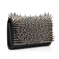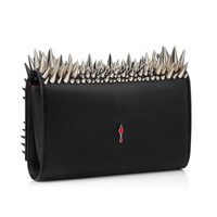 An iconic Maison Christian Louboutin model, the Paloma clutch boasts sophistication. This slender design is entirely crafted from black nappa leather. It features signature silver spikes in different sizes. - A 49 in detachable reinforced leather chain strap allows it to be carried by hand or over the shoulder - Magnetic closure - 3 inside pockets - 10 card slots - Dimensions: - H 5.5 x L 9 x W 2.4 inches Product information Reference: 1255009BK65 Color: Black Material: Nappa leather Dimensions: 145mm x 230mm x 60mm