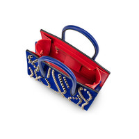 An iconic Maison Christian Louboutin model, the Paloma bag in size mini boasts a sophisticated appeal. It is crafted in Galactiqueen blue patent calf leather, and enhanced with signature gold spikes. - Two 4.3 inch/ 11 cm handles and an adjustable (31.8 to 43.3 inches/ 81 to 110 cm) strap allow it to be carried multiple ways - Zip closure - 1 interior zipped pocket - Dimensions: H 12.6 x L 10.2 x W 5.5 inches H 32 x L 26.5 x W 14 cm Product information Material: Calf leather Color: Galactiqueen Reference: 32352105492 Dimensions: 215mm x 180mm x 90mm Collection: Fall Winter 23