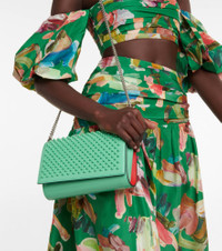 The Mytheresa-exclusive Paloma Small clutch from Christian Louboutin is a refreshing update to a signature style. Made from pastel green patent leather, it’s embellished with an iconic lipstick-red lining and tough-luxe Lou spike embellishments. Product Details - Trim: calf leather - Closure: snap-buttoned fastening - Material: calf leather - Made in Italy - Designer color name: Detox/Detox - Comes with dust bag - exclusive to mytheresa.com - Internal details: leather lining, two internal compartments, zipped centre compartment, Card slots - Detachable chain shoulder strap - Item number: P00698478 Size & Fit - Height 15cm-6" - Width 23cm-9" - Depth 5cm-2" - Length shoulder strap 125cm-49"