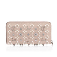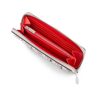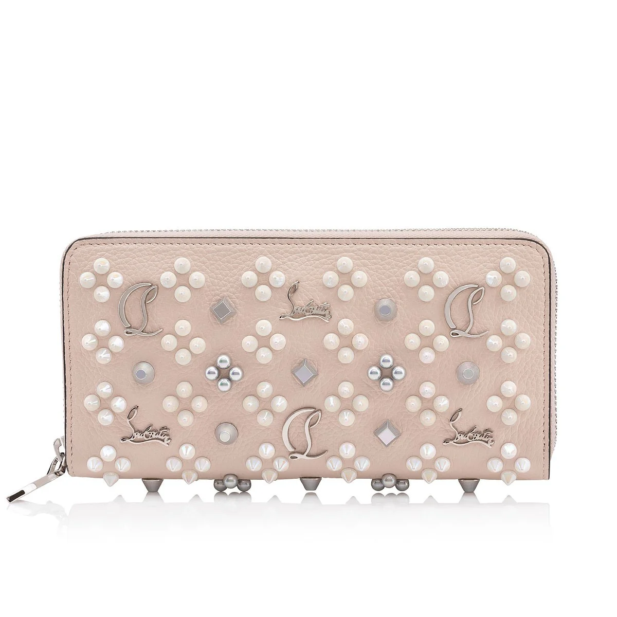 The Women’s Panettone wallet is a long-line wallet with a spacious interior. It has a variety of pockets for different purposes. This model is crafted in leche beige calf empire leather and is embellished with signature tonal Maison Christian Louboutin Loubinthesky spikes. - 1 zipped pocket - 16 card slots - Press stud and zip fastening - 6 flat pockets - 1 bill pocket - Dimensions: H 100 x L 195 x W 25 mm Product information Material: Calf leather Color: Leche Reference: 3175224F609 Dimensions: 3.9 x 7.9 x 1.2 inches Collection: Fall Winter 23