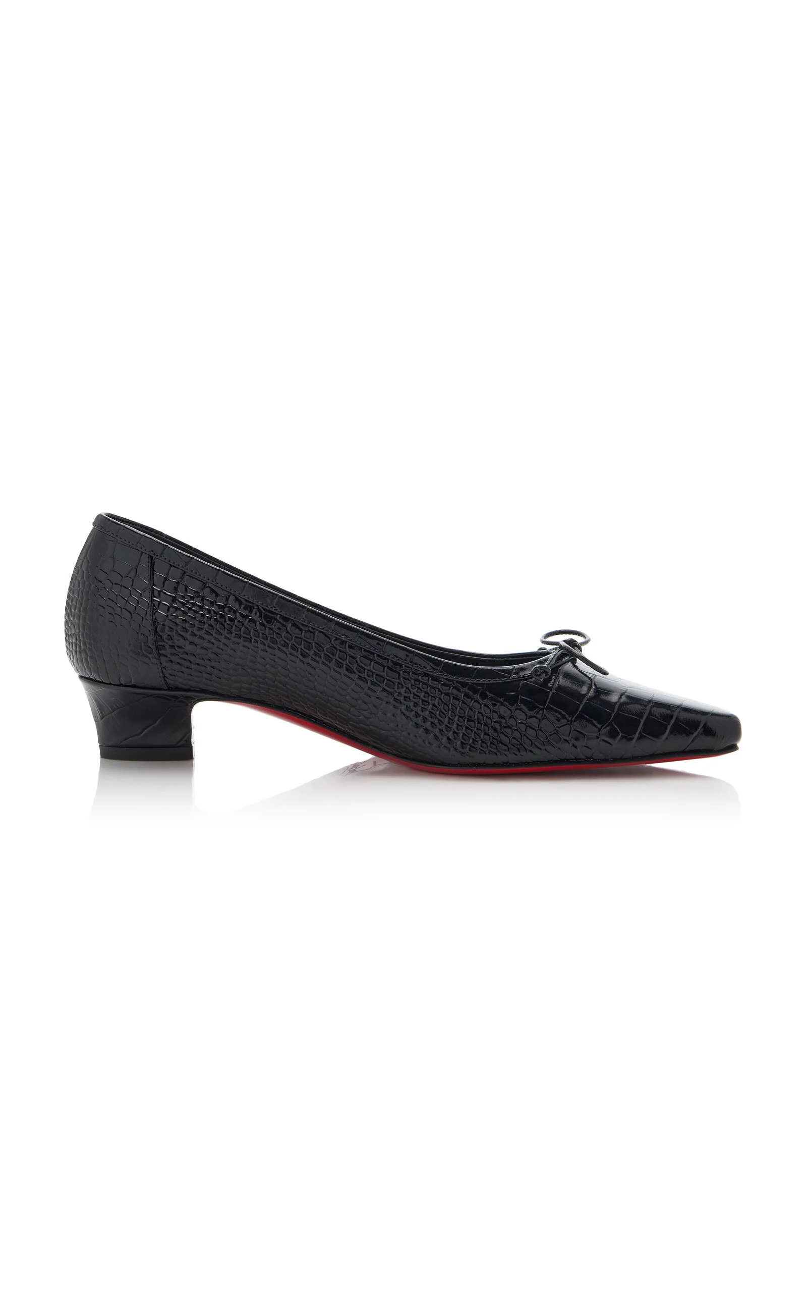 His shoes are instantly recognizable, innately covetable and fashion-industry famous. Lest you get caught up in the cachet, it should be noted that each accessory is very much the sum of its incredible parts. The 'Promessina' ballet flats have an elegant square-toe silhouette made from croc-embossed calfskin set on a low heel. PRODUCT DETAILS - Heel measures approximately 35mm/ 1.35" - Slip on - Composition: calfskin leather - Made in Italy