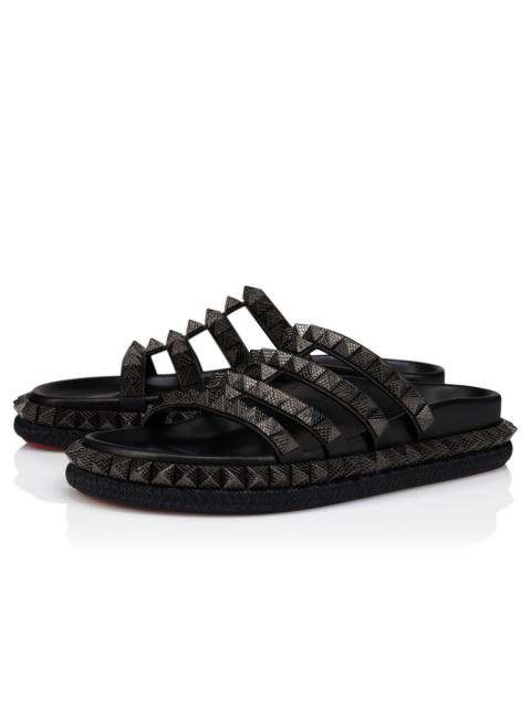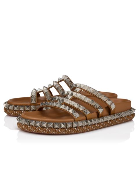 Inspired by the ancient heritage of Alula in Saudi Arabia, the Pyra Hallulila is crafted in waxed Terra brown calf leather. This mule sandal sits on a sole crafted from rope. Tiny pyramid-shaped spikes adorn this slip-on mule that's finished with the signature Maison Christian Louboutin Loubi red sole. Product information Reference: 32502457130 Color: Terra Material: Waxed calf leather