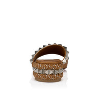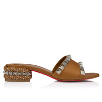 Featuring pyramid-shaped spikes, the Pyramule sandals is a striking summer slip-on with a 30 mm heel. This Maison Christian Louboutin model has a wide strap over the toe showcasing a row of spikes top and bottom, with further spikes adorning the heel. It is crafted in Terra brown calf leather and meticulously finished with tonal lining. Product information Reference: 12509807130 Color: Terra Material: Calf leather Heel Height: 30 mm