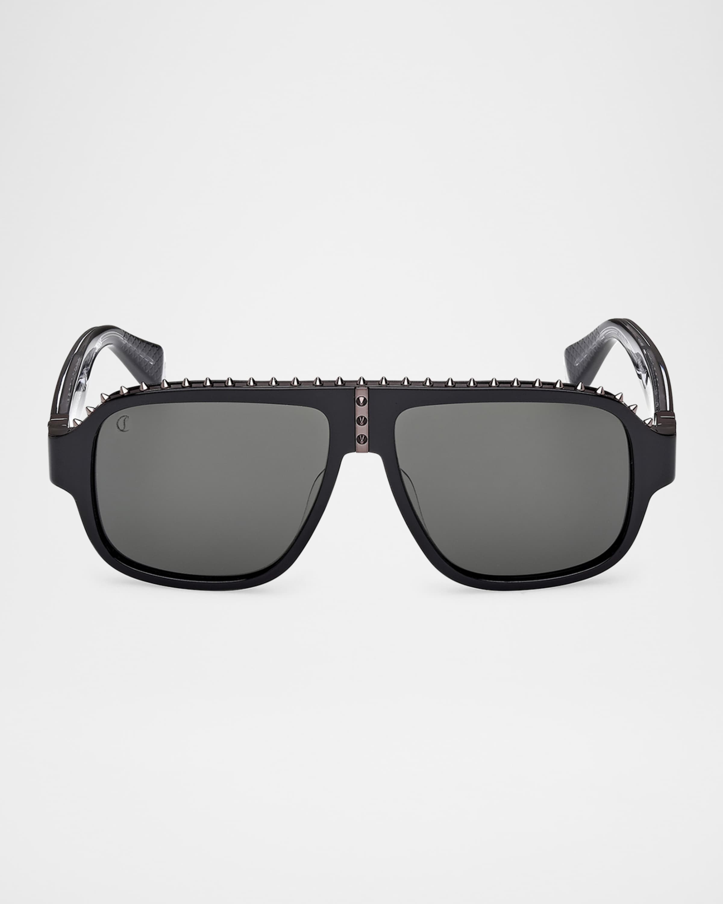 - Christian Louboutin "LB0005W" aviator sunglasses in acetate - Eye/bridge/temple (in mm): 57-13-140 - Gradient lenses - Saddle nose bridge - Thin, tapered arms - Featuring classic spiked details - Acetate - Spot clean - 100% UVA/UVB protection - Made in Italy Online Inquiries: NMS21_D59V2 Store Inquiries: #5030632