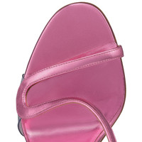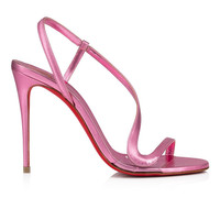 A decorative sandal with a wavy strap working its way over the toe, across the foot and up to the ankle, the Rosalie sandal showcases Maison Christian Louboutin’s creativity and savoir-faire. This modern design exudes elegance and is set atop a 100 mm stiletto heel creating a beautiful arch in the foot. It is crafted in Glam purple laminated leather for a shimmering finish. Product information Material: Leather Color: Pink Reference: 1240274P888 Heel height: 100 mm Collection: Summer 24