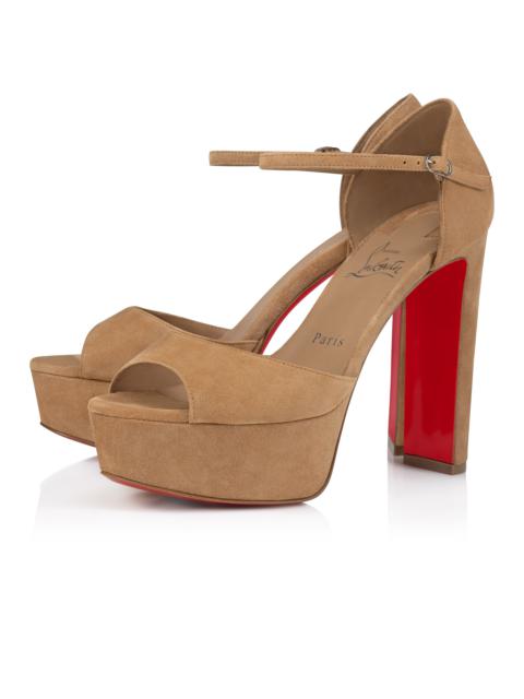 Unveiling the Sandaloo sandal in Lionne beige, sitting on an elegant 130 mm block heel with a delicate ankle strap that crosses the foot. Crafted from veau velours, with a closed heel and open front revealing a glimpse of the toes, this sophisticated shoe is finished with the iconic Maison Christian Louboutin sole to make a statement with every step. Product information Reference: 3240088F760 Color: Lionne Material: Veau velours Heel Height: 130 mm