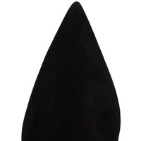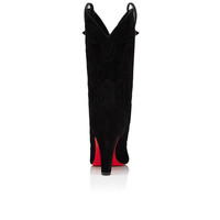 An expression of ultimate sophistication, the Santiabooty in veau velours features an architectural pointed toe, a metal embellishment detail on the side, and sits on an 85 mm Cuban heel. This stylish boot in black offers a contemporary look, completed by the iconic Maison Christian Louboutin Loubi red sole. Product information Reference: 3250414BK01 Color: Black Material: Veau velours Heel Height: 85 mm