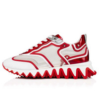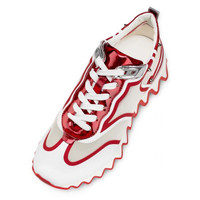 The Sharkina is a typical example of Maison Christian Louboutin's constant search for innovation. Set on a two-tone notched sole inspired by shark teeth, it combines white mesh with Psychic Loubi red patent calf leather panels with an iridescent hue. Adorned with a metallic spike, this model showcases sophistication and creativity. PRODUCT INFORMATION Reference: 3220583Q647 Color: White Material: Fishnet Collection: Fall Winter 22