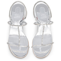 The delicate Simple Queenie Sandal is crafted in silver laminated specchio leather. This sleek, summery Maison Christian Louboutin model is set on a 25 mm heel. The slender PVC straps are adorned with elegant silver strass. Product information Material: Specchio leather Color: Silver Reference: 3240266S265 Heel height: 25 mm Collection: Fall Winter 24