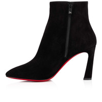 The timeless, elegant So Eleonor ankle boot enhances the foot with its sophisticated style. Crafted entirely in Black Veau Velours, this model showcases discreet tone-on-tone stitching and a side zip. Mounted on an 85 mm heel, this shoe enchants with sophisticated allure as it enhances the foot with a slightly rounded toe. The harmonious, clean lines are testament to the expertise of Maison Christian Louboutin. Product information Material: Veau velours Color: Black Reference: 3210865BK01 Heel height: 85 mm Collection: Fall Winter 21