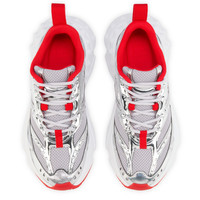 Maison Christian Louboutin's So Flo running sneaker is a dynamic twist on the iconic Trailnrun sneaker, featuring a signature blend of mesh, laminated calf leather and veau velours. This model has a heel tab, signature silver spikes at the back, and a CL monogram on the side. It is crafted in a silver color and finished with an anatomical heel, padded insole and a rubber sole for bounce and lightness. Product information Reference: 1260214SV20 Color: Silver Material: Laminated calf leather