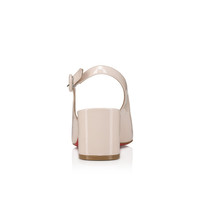 The timeless So Jane Sling pump enchants with sleek lines. This Maison Christian Louboutin slingback is crafted in Leche beige patent calf leather. It features a strap with a round tonal clasp on the side. This model reveals a low-cut vamp and is enhanced with a 55 cm slanted heel. Product information Material: Patent leather Color: Beige Reference: 3230029F608 Heel height: 55 mm Collection: Fall Winter 23
