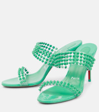 Tough-luxe, brand-signature Lou spikes lend an exquisite edge to the Mytheresa-exclusive Spike Only sandals from Christian Louboutin. They’re made from pastel green patent leather with PVC straps, 85mm heels, and iconic red-lacquered soles. Product Details - Toe shape: round open toe - Comes with a box - Sole: leather insole and sole - Comes with extra heel tips - Made in Italy - Designer color name: Detox - Comes with dust bags - exclusive to mytheresa.com - Trim: calf leather - Upper: calf leather, polyvinyl chloride - Item number: P00691723 Size & Fit - True to size - Wide - European sizes - 8,5cm-3.5" heel (size EU 38)