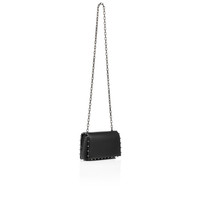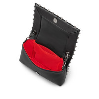 The Spiky pouch in black nappa leather exhibits a sense of boldness. Iconic Maison Christian Louboutin spikes embellish the flap while a silver chain gives an edgy feel. - 1 flat pocket - 1 main compartment - Magnetic snap fastening - 1 chain strap H 12 x L 18.5 x 5.5 inches Product information Reference: 1255070B078 Color: Black Material: Nappa leather Dimensions: 120mm x 185mm x 55mm