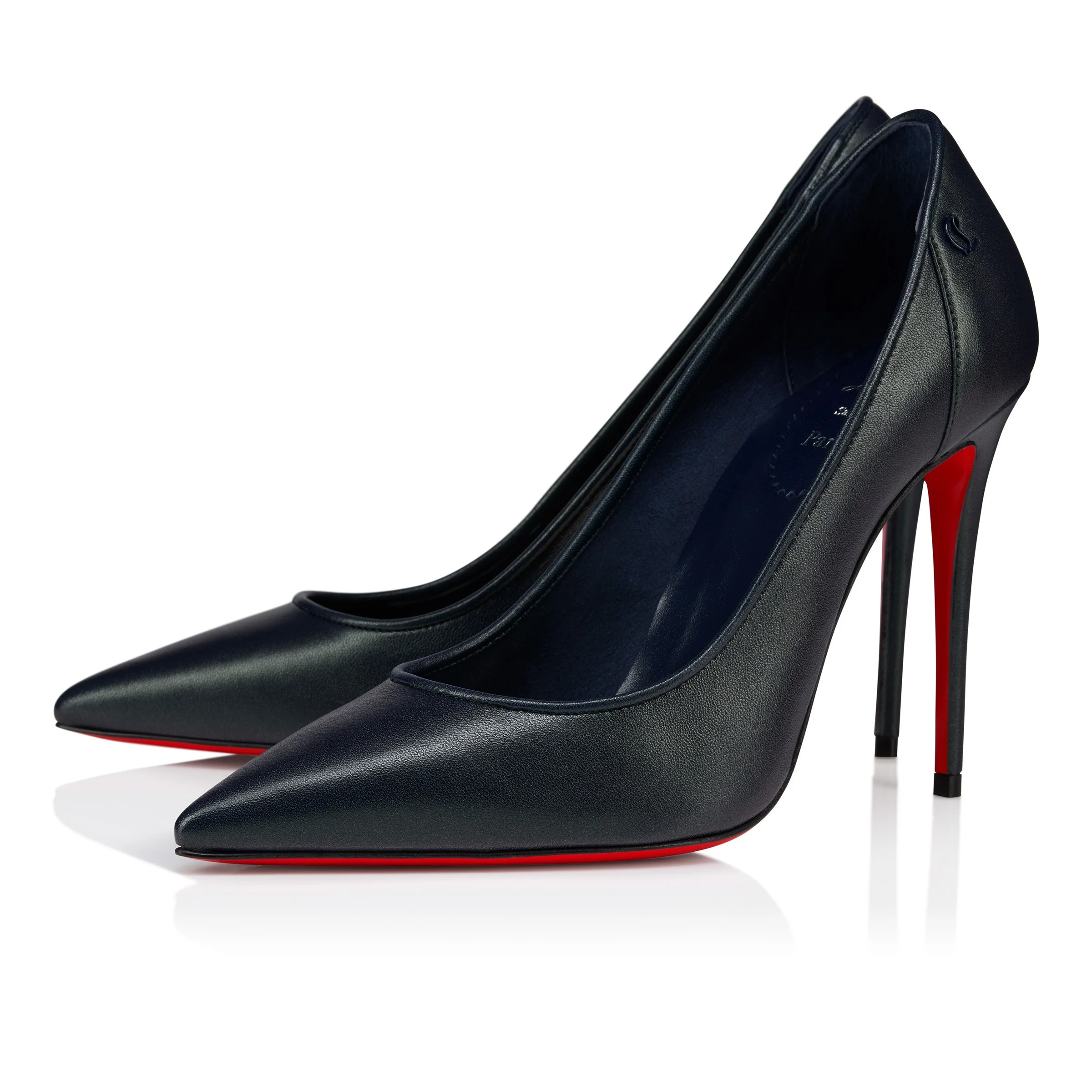 Maison Christian Louboutin's iconic Sporty Kate pump has striking elegant lines. Its sleek upper features an urban pointed toe combined with a deep, low-cut vamp, daringly revealing the foot. Crafted from iridescent Zaffiro blue lamb nappa leather, this model is set on a 100 mm heel and features the signature CL monogram on the side. Product information Reference: 3250029V198 Color: Zaffiro Material: Iridescent nappa leather Heel Height: 100 mm