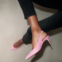 The Sporty Kate Sling pump crafted from nappa leather in Calipso pink and featuring a delicate 55 mm kitten heel is the embodiment of elegance. The closed toe contrasts with the open slingback and fine stitching adorns each edge. Detailed with the iconic Maison Christian Louboutin initials and embellished with a daring Loubi red sole, this slingback makes a statement. Product information Material: Nappa leather Color: Calipso Reference: 3240004P934 Heel height: 55 mm Collection: Fall Winter 24