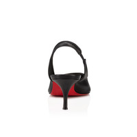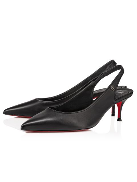 The Sporty Kate Sling pump crafted from nappa leather in Black and featuring a delicate 55 mm kitten heel is the embodiment of elegance. The closed toe contrasts with the open slingback and fine stitching adorns each edge. Detailed with the iconic Maison Christian Louboutin initials and embellished with a daring Loubi red sole, this slingback makes a statement. Product information Material: Nappa leather Color: Black Reference: 3240004B439 Heel height: 55 mm Collection: Fall Winter 24