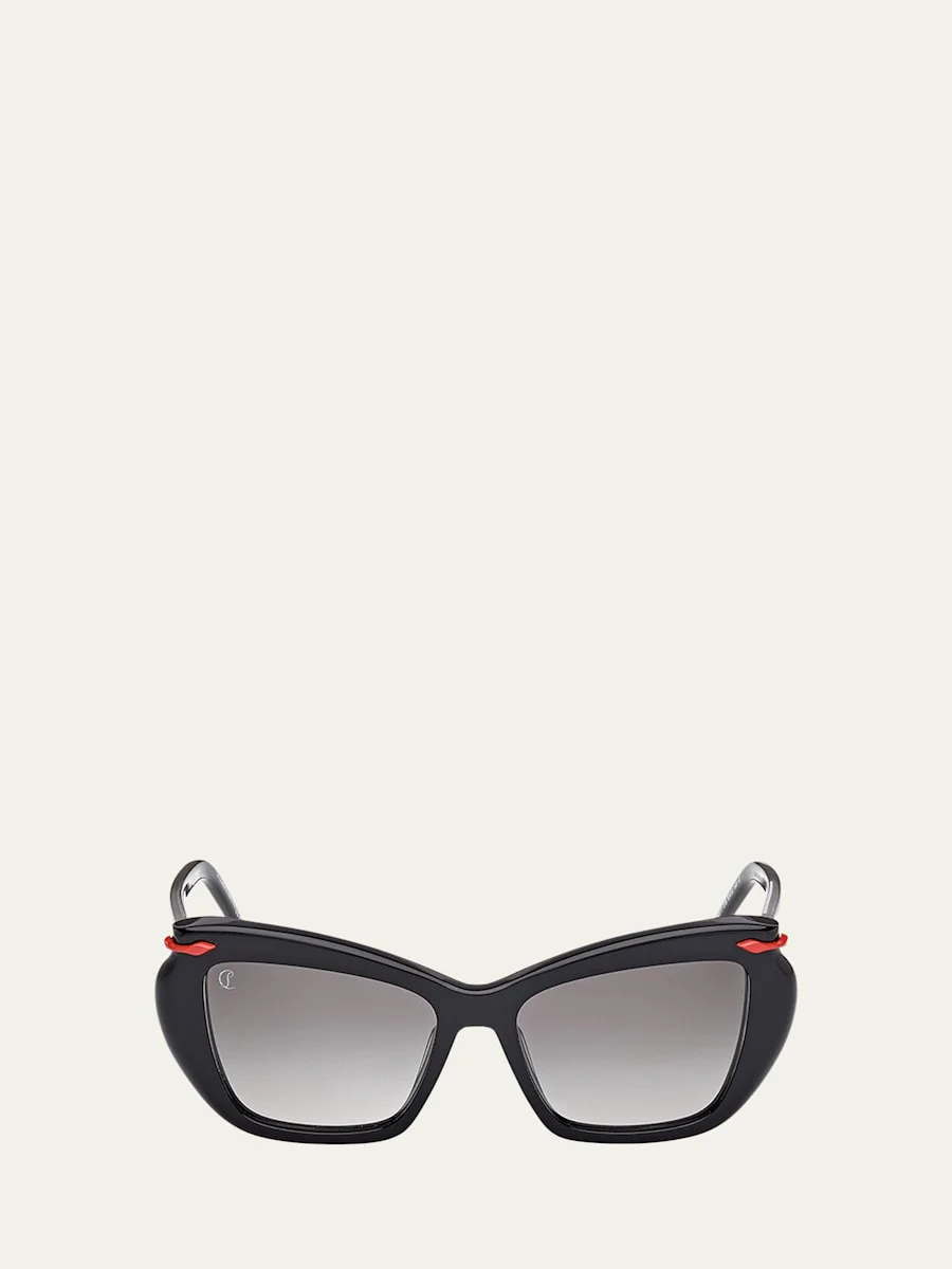 Christian Louboutin square sunglasses in acetate Eye/bridge/temple (in mm): 53-16-140 Gradient lenses Saddle nose bridge Thin, tapered arms Logo at lens Spot clean 100% UVA/UVB protection Made in Italy Proposition 65 warning for California residents Online Inquiries: BGS21_D59GD| Store Inquiries: #5028804