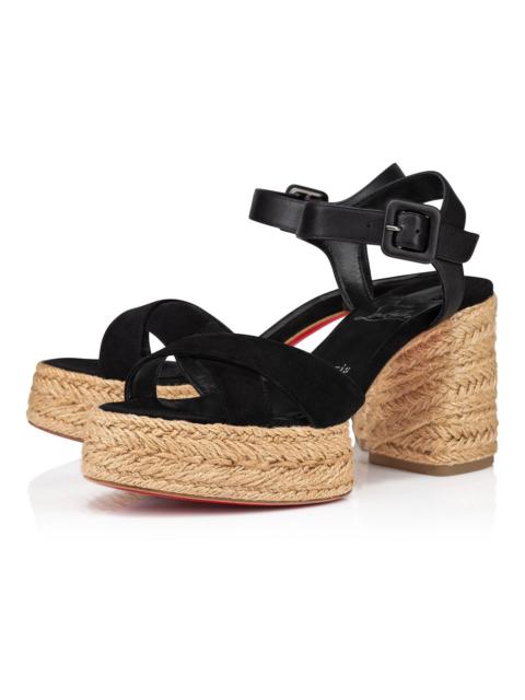The Calakala sandal is a new twist on the traditional espadrille with a braided sole. This architectural style showcases Maison Christian Louboutin's creativity. The Rhea brown suede calf leather straps cross over the upper, while the ankle is held in place by leather straps and a metal clasp. It sits on a 85 mm heel. Product information Material: Suede Color: Rhea Reference: 12409125483 Heel height: 70 mm Collection: Summer 24