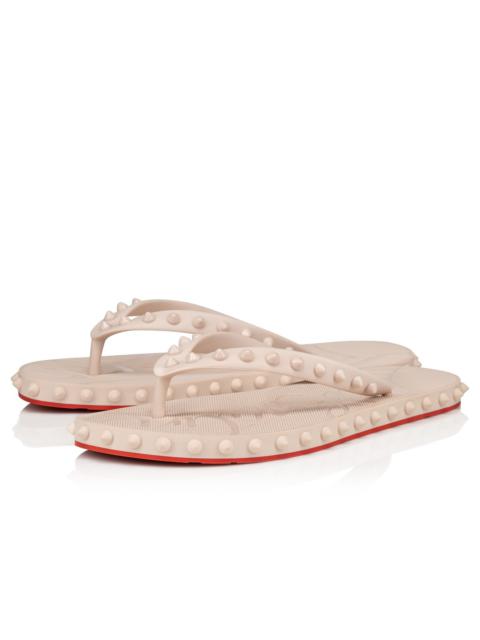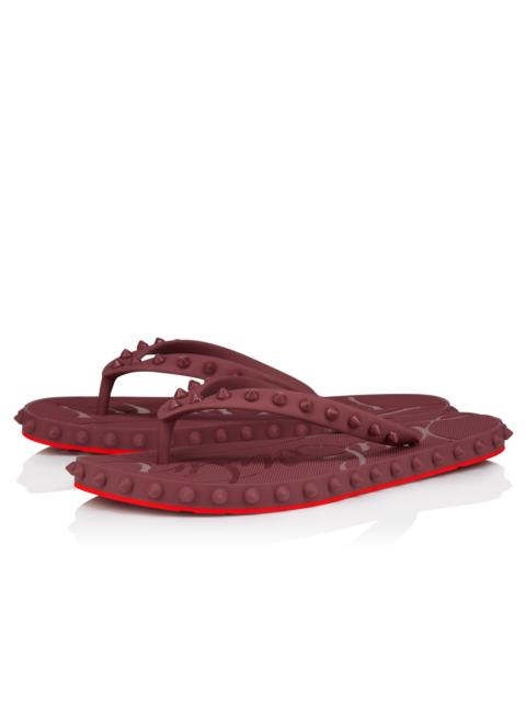 The Super Loubi Flip for women in Haiiro green rubber features a tone-on-tone design with signature spikes outlining the sole and adorning the flip-slop's straps. This contemporary style features a footbed embossed with a tonal Maison Christian Louboutin signature, and is set on a lightweight sole that's stamped with the logo. Product information Reference: 1230961E823 Color: Haiiro Material: Rubber