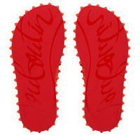 This season's Super Loubi flip-flop for women in Magma orange pushes the boundaries with its iconic spikes adorning the toe strap and sole. Crafted from rubber and featuring the Maison Christian Louboutin signature on the upper sole and a Loubi red base sole, this shoe is a timeless summer wardrobe piece to flaunt any look. Product information Reference: 1230961O043 Color: Magma Material: Rubber