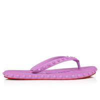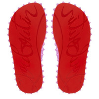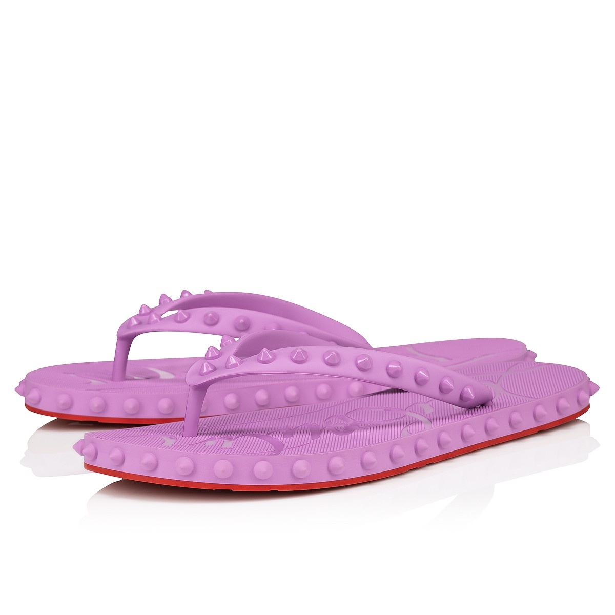 The Super Loubi Flip Donna sandal has a daring appeal. Crafted entirely in Peony pink rubber, the sole bears a Louboutin signature. It is surrounded by a row of tonal signature spikes, that also adorn the slender straps crossing the foot. The sleek lines of this summery sandal showcase Maison Christian Louboutin's expertise. Product information Material: Rubber Color: Peony Reference: 1230961P904 Collection: Summer 24