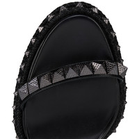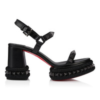 The Superaclou receives a new 85 mm heel height this season. Crafted from black lamb nappa leather, the toe and ankle straps are adorned with mini pyramids and the sole is crafted from spikes and rope, evoking an Eastern theme. The iconic Maison Christian Loubi red sole adds the finishing touch to this contemporary sandal. Product information Reference: 3250424B439 Color: Black Material: Lamb nappa leather Heel Height: 85 mm