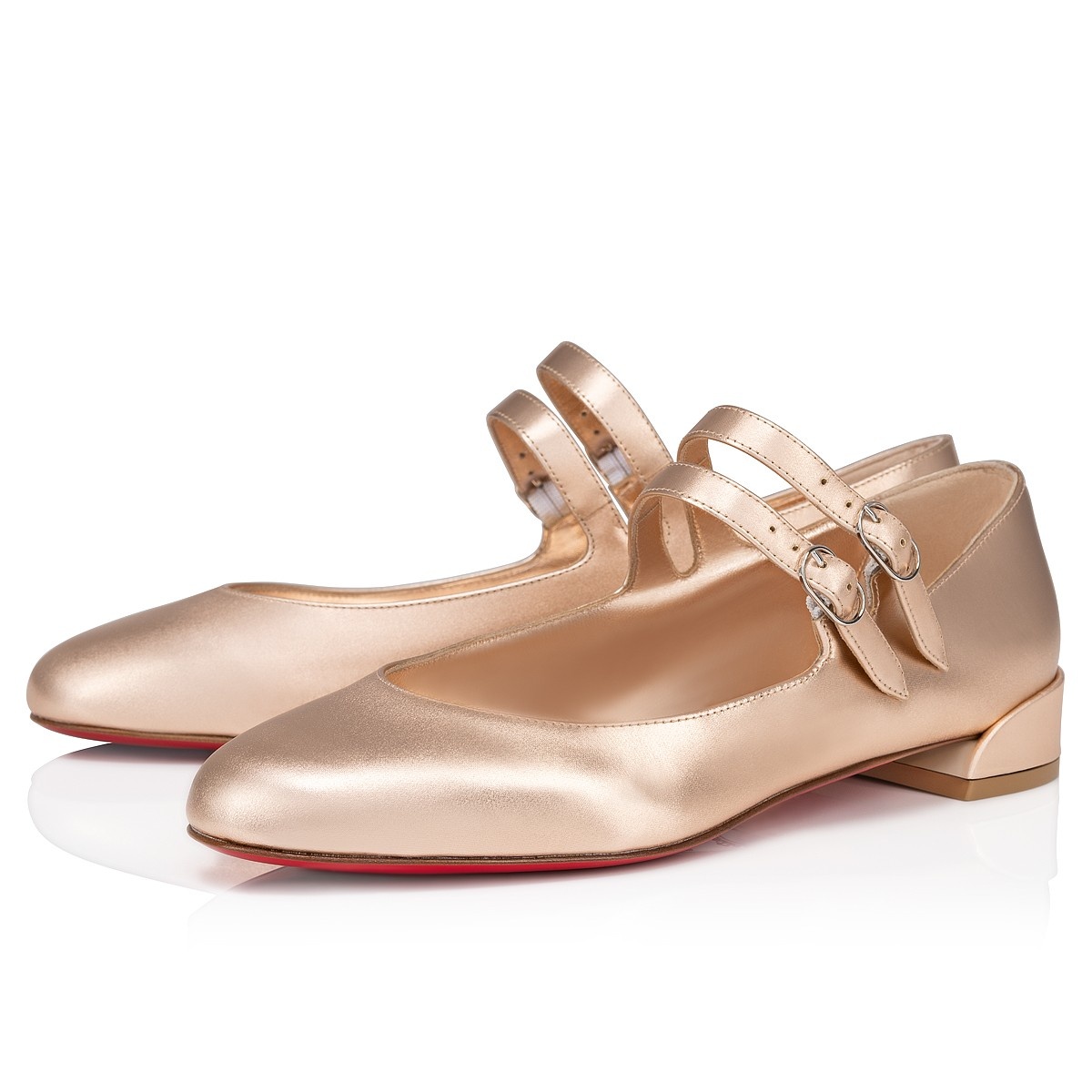The Sweet Jane ballerina has a sophisticated appeal. Taking its cue from the Mary Jane, this Maison Christian Louboutin shoe is crafted in iridescent Leche beige calf leather with pink highlights. It features two elasticated straps with tonal buckles for an elegant finish. Limited edition Product information Material: Calf leather Color: Beige Reference: 1240213F608 Collection: Summer 24