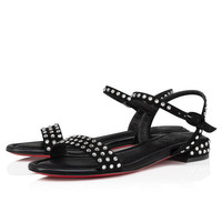 The Sweet Jane Strass Boum sandal features sleek lines. This summer style is crafted in black veau velours and adorned with hand-placed silver strass. It features two elasticated straps with tonal buckles for an elegant finish. The slender strap enhances the foot, showcasing Maison Christian Louboutin's sophistication. Product information Material: Veau velours Color: Black Reference: 1240671T023 Collection: Summer 24