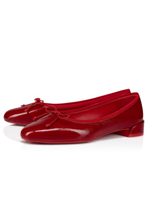The Sweetie Jane ballerina pump has a sophisticated appeal. With its slightly rounded toe, it is made entirely from Loubi red Patent Vog calf leather. This urban Maison Christian Louboutin style features a small bow on the top.The "Vog patent leather" material, being more flexible, offers better suppleness. Its natural wrinkled effect may have slight variations between the photo and the product. A gleaming TPUfinish elevates this model's red leather sole, ensuring lasting color vibrancyand greater endurance of the sole. Product information Reference: 1250487R558 Color: Loubi Material: Patent leather