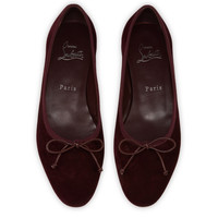 The Sweetie Jane offers a modern take on the timeless flat with this season's new design. This ballerina model, in Amara burgundy veau velours, features a front bow. It is finished with the signature Loubi red sole, representing Maison Christian Louboutin's iconic sophistication. This model features a new 'Everlasting Red' sole thanks to an innovative coating technique that ensures resistance and lasting vibrancy for our signature Louboutin red. Product information Reference: 3240901R839 Color: Amara Material: Veau velours