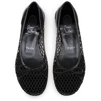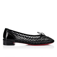 The Sweetie Jane Mesh ballerina pump has a sophisticated appeal. It features a slightly rounded toe and is entirely crafted in black fishnet and patent calf leather. This elegant Maison Christian Louboutin style features a small bow on the top and a tapered silhouette. Product information Reference: 1250987B439 Color: Black Material: Mesh over cotton