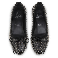 The Sweetie Jane Spikes ballerina pump has a sophisticated appeal. It features a slightly rounded toe and is crafted in supple nappa leather with grosgrain trim. The upper is adorned with a little bow and Maison Christian Louboutin's signature metal spikes. Product information Reference: 3240613J823 Color: Black Material: Nappa leather Collection: Fall Winter 24