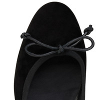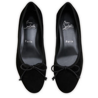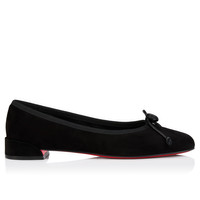 The Sweetie Jane offers a modern take on the timeless flat with this season's new design. This ballerina model, in black veau velours, features a front bow. It is finished with the signature Loubi red sole, representing Maison Christian Louboutin's iconic sophistication. This model features a new 'Everlasting Red' sole thanks to an innovative coating technique that ensures resistance and lasting vibrancy for our signature Louboutin red. Product information Reference: 3240901B439 Color: Black Material: Veau velours