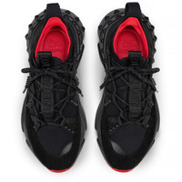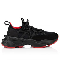 A lightweight running shoe, the Trailnrun women's model is a low-top sneaker. Inspired by the lines of a hiking boot, it is set on a sole accented with Loubi red piping. This contemporary black model by Christian Louboutin blends calf leather, fishnet and neoprene. It has a heel tab and spikes. Product information Reference: 1250162BK01 Color: Black Material: Fabric