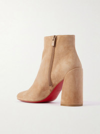 Christian Louboutin’s sleek ‘Turela’ ankle boots draw from ‘60s styles. They’re made from supple suede with rounded toes and sculptural 85mm block heels. Wear yours with jeans. Size & Fit - Fits true to size, take your normal size - Italian sizing Details & Care - Heel measures approximately 85mm/ 3.5 inches - Beige suede - Zip fastening along side