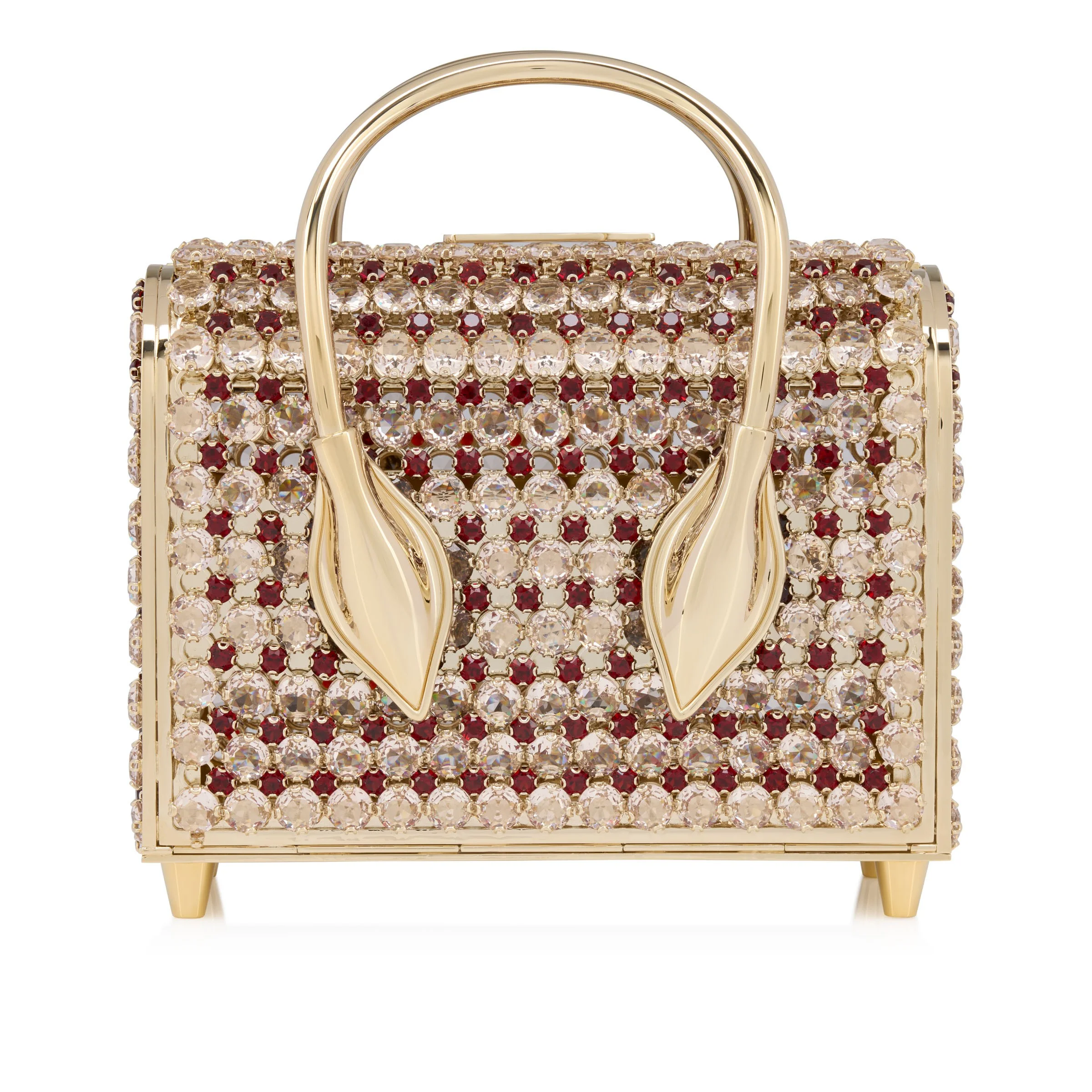 An elegant addition to this season's collection, the Venus Gem Bag is a true statement piece. The 750 hand-placed strass in Loubi red and Suzuran white embody the exceptional craftsmanship of Maison Christian Louboutin. This model, crafted from reflective steel, features chapes in the shape of the iconic Miss Z sole. - Magnetic fastening - 1 main compartment - 2 handles 1.6 inches / 4 cm - Dimensions: - H 5.5 x L 6.9 x W 2.8 inches - H 14 x L 17.5 x W 7 cm Product information Reference: 1265117W706 Color: Suzuran Material: Mesh and strass Dimensions: 140mm x 175mm x 70mm