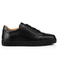 A statement sneaker of infinite potential, Christian Louboutin’s Vieira is a round-toe sneaker, crafted in black calfskin and streamlined to a low-top silhouette. Confident in its tone-on-tone look, elegant topstitching and grosgrain piping detail add a polished finish to this signature model. Product information Material: Calf leather Color: Black Reference: 1180392B074 Collection: Summer 18