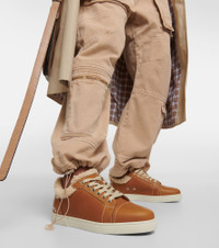 Christian Louboutin's Vieirissima sneakers receive a makeover this season. Made from brown leather in Italy, this versatile style comes with cloud-soft shearling trims and rests atop comfortable cushioned soles. Product Details - Upper: calf leather - Comes with extra laces - Lining: shearling - Sole: shearling insole, rubber sole - Toe shape: round toe - Made in Italy - Trim: shearling - Closure: lace-up - Comes with a box - Comes with dust bags - Item number: P00824783 Size & Fit - True to size - Narrow fit due to lining - European sizes - 2cm-1" platform (size EU 38) - 4cm-1.5" wedge heel (size EU 38)
