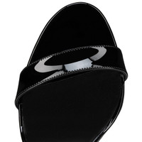 Taking its cues from the iconic Hot Chick Pump, the Zeppa Chick stands out with graphic lines. This Maison Christian Louboutin model features an 85 mm wedge heel, an ankle strap and V-shaped notches cut out of the side. It is crafted in black patent leather with a low-cut vamp for an elegant finish. Product information Material: Patent leather Color: Black Reference: 3230041B439 Heel height: 85 mm Collection: Fall Winter 23