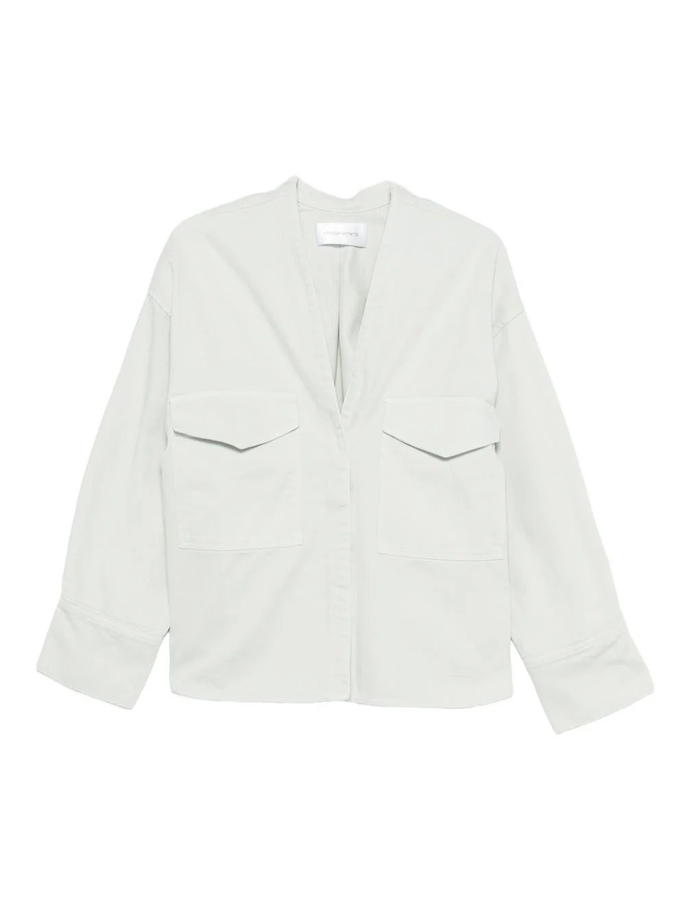 pocketed V-neck denim jacket Highlights - Mint mist - V-neck - Two front pockets - Long sleeves - Button fastening Imported Composition Cotton 100% Washing instructions Machine Wash