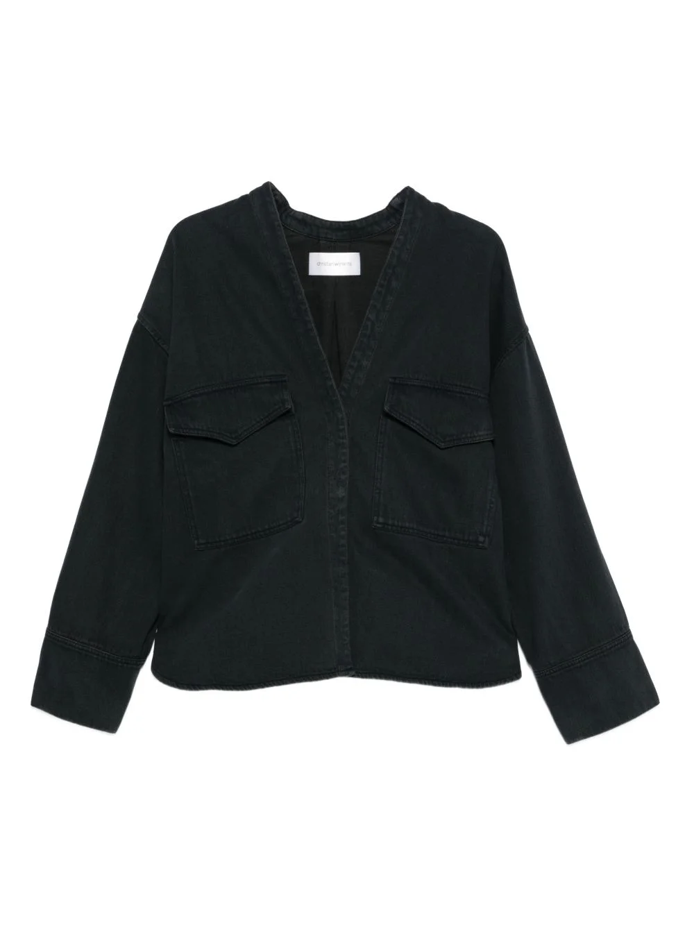 pocketed V-neck denim jacket Highlights - Dark blue - Two chest patch pockets - Long sleeves - Buttoned cuffs - V-neck Imported Composition Cotton 100% Washing instructions Machine Wash