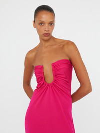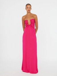 Sculptural hardware anchors a plunging neckline. This strapless maxi dress is crafted in a fine jersey that ruches and defines the waist. - Signature u prong hardware - Plunging neckline - Gathered ruche detailing - Slim fit at bust with internal tape¬† - Maxi silhouette - Invisible back zipper - Slim fit bodice - True to size - 100% Viscose - Hardware: 100% Zinc Alloy Am√©lie is 180cm/511‚Au and wears size AU 8 (US 4) AU sizing