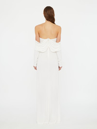 Arced Palm Strapless Shawl Gown