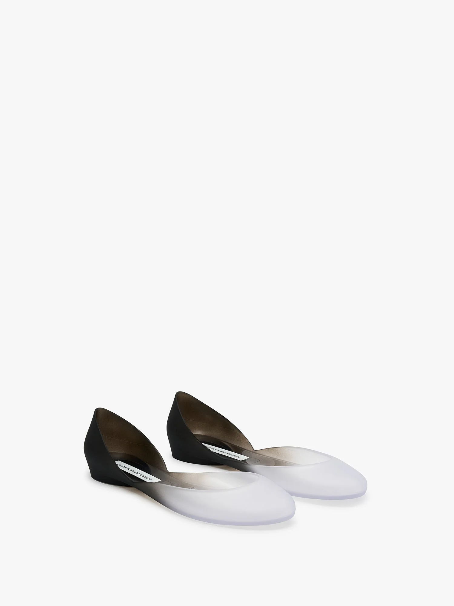 A minimalist flat that slips on with ease. Hand crafted in Italy made in a semi- transparent, jelly-like 100% PVC. Refined by a gradient tonal fade detailing. - Made in Italy - Water resistant - Jelly-like texture - Slip-on design - Gradient tonal fade detail - Semi-translucent body - Rounded closed toe - 100% PVC EU sizing
