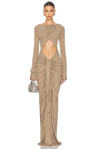 DETAILS - Back zip closure - Front cutout - Gathered and draped front panel - Composition: 100% Viscose
