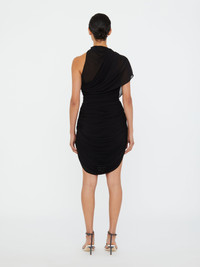 Adorned with bespoke natural glass hardware, the Beach Glass Circular Jersey Mini Dress is crafted in slinky jersey with a sheer georgette overlay, creating layered dimension and fluidity. Soft draping through the neckline contrasts the sculpted, ruched skirt, while a considered cutout under the arm draws the eye with subtle exposure. - Asymmetric draped silhouette - Ruched mini skirt - Beach glass hardware - Underarm cutout detail - Main: 71% Rayon 29% Polyester - Overlay: 95% Viscose 5% Elastane - Hardware: 100% Copper With Glass - Dry Clean Only Model is 180cm/5'11" and wears size AU 8 (US 4) AU sizing